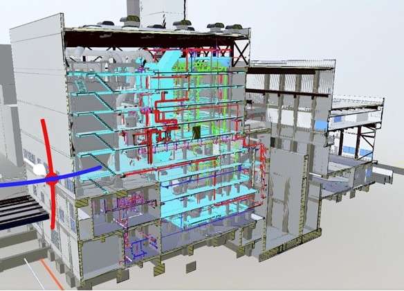 14年には、施工段階へのBIM活用に舵を切り、東京、大阪、名古屋で施工BIMのトライアルプロジェクトにも取り組んだ。現在は建築プロジェクトのBIM導入率が81%に達するまでに拡大した。このうち設計施工案件は87%、他社設計案件では76%になる。内田氏が「BIMの標準ツールは決めず、プロジェクトに合わせて最適なソフトを選定することが当社の考え方」と説明するように、特に施工段階ではいくつかのツールを使い分けているが、他社設計案件では「設計事務所がRevitを使っている場合はそのデータを活用して展開するケースも多い」という。