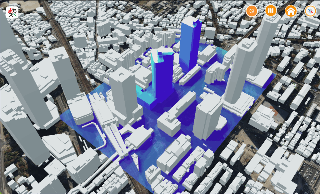 建設コンサルタントの中には、社内に蓄積する情報とまちスペースを連携することで、新たなビジネス展開を検討したいと考えている企業もある。特に親和性の高いのはBIMデータとの連携だ。廣澤氏は「建築プロジェクトのBIMデータをまちスペースと連携して建物周辺の環境シミュレーションに活用することも有効な使い方の1つ」と説明する。本社を置く梅田センタービルのBIMデータをまちスペースと連携させ、周辺環境の解析も分析済みだ。
