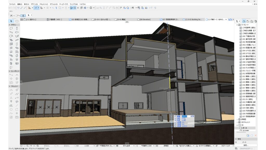 中岡主任は「最初はBIMの先生役として先輩に教えることに戸惑いもあったが、当社の伝統でもあるフラットな雰囲気もあり、前向きに取り組むことができた」と振り返る。BIM担当役員を担う安藤常務が「社内で孤立しないような環境をつくるように心掛けてきた」ことも後押しとなった。各設計担当はパースづくりから学び、段階的に一般図まで仕上げる流れでArchicadの操作スキルを向上してきた。