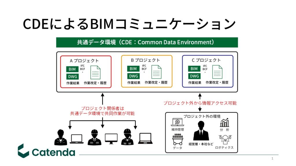 大切なのは「常に正しい情報に対して関係者がストレスなく自由にアクセスできることであり、しかもその枠組みが国際標準に準拠した枠組みであることも重要なポイント」と訴える。欧州を中心に海外のBIMプロジェクトでは、CDEプラットフォームを基盤に関係者が情報を共有している。「BIMの中にある情報を円滑に管理するCDEの構築こそが、次のBIMのステップになる。まさにopenBIMの時代が到来しようとしている」