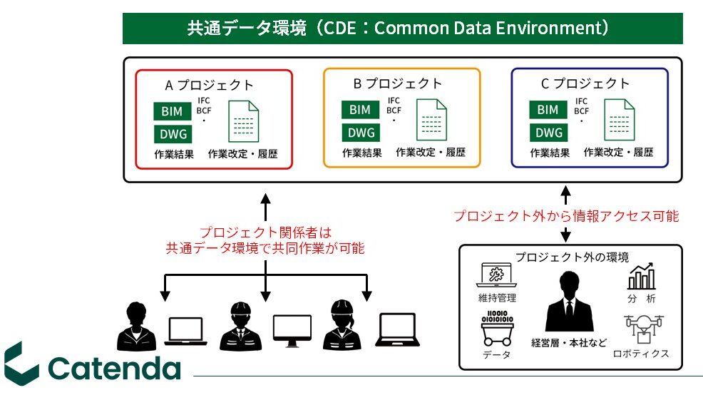 openBIM環境を構築する上で、重要なのは「プロジェクト関係者間でアクセス権限をあらかじめ設定する部分」と川井氏は説明する。企業としてCatenda Hubを全面導入する際も同様だ。社内のワークフローに基づいて関係者の権限を位置付けることが必要にはなるが、「現行の枠組みをそのまま当てはめられる導入のしやすさがCatenda Hubの特徴」と強調する。