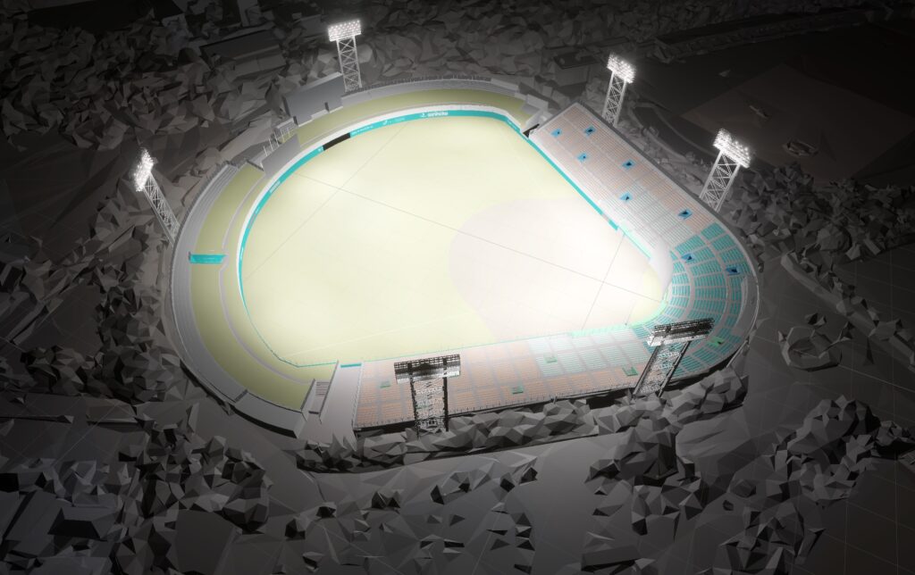 浜松球場は両翼99m、中堅122mで、6基の夜間照明塔が配置されていた。照明設計を担当した篠塚氏は「周辺も含めた球場全体の点群データを取得した上で、竣工図面を基に現況の3次元モデルを作成し、照明位置や照射角度を厳密に割り出してきた」と説明する。設計の最適解を導くためのツールとして、オートデスクのビジュアライゼーションソフト『3ds Max』を軸とした20種類もの関連ソフトをフル活用した。