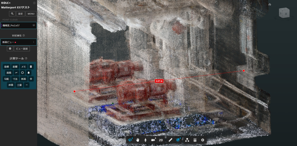 これまでKOLC+では、E57形式に未対応だったため、3Dレーザースキャナーや Matterport から出力されるE57形式ファイルを、点群処理ソフトウェアでLAS形式などに変換してからインポートする作業が必要だった。今回の対応により、迅速な統合管理が可能になる。