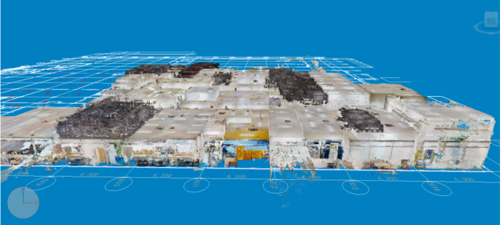 適用した食品・医薬生産施設の改修プロジェクトでは、過去に数度の改修を繰り返したことで現状の把握が困難となっていた天井内の既設機械設備の詳細調査に活用した。調査ではドローンで天井内の狭小空間をスキャンしたが、物理的にエリアが分断されているため、単独では建物全体の整合性を保つことが難しく、環境特性に応じた適材適所な機器を選択し、3台の地上型LiDAR搭載機を使って建物全体の骨格を構築。そこにドローンで取得した局所データを合成する手法を使った。