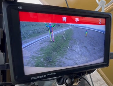 AI’sは、 重機に取り付けたAIカメラにより、重機後方約130度、8m範囲内に人が入ると自動検知し、重機のオペレーターはモニターで周辺の状況や作業者の人数を即座に把握できる。AIカメラが人物を検知するだけでなく、片手を挙げた場合は「注意」、両手を挙げた場合は「警告」というように指示者のジェスチャーを判定し、モニター表示とブザー音でオペレーターに伝達する。