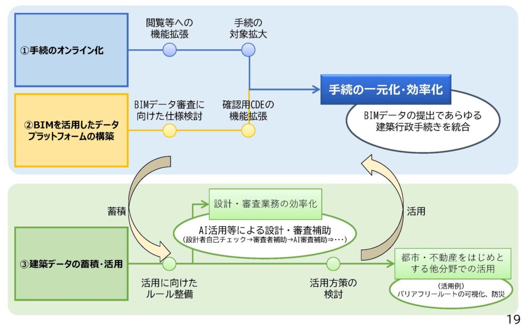 国土交通省住宅局の佐々木雅也参事官(建築企画担当)付建築デジタル推進官は「予定どおりに進んでいる。実プロジェクトでの試行・検証(ロールプレー)の結果を反映し、入出力基準の解説書も近く公表する。申請者にとってはよりBIM図面審査に対応しやすくなる」と説明する。