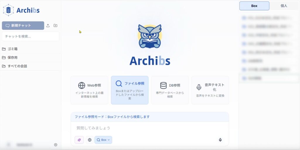 Archibsは、Artificial(人工的な)Resolver(解決者)、Contents(コンテンツの)Hub(集中管理)& Individual(個々の)Butler(執事)Systemの頭文字をとった名称となり、 現場監督が抱えるさまざまな業務に対し、チャットや音声による対話を通じて、情報検索の代行や資料作成支援を行う。