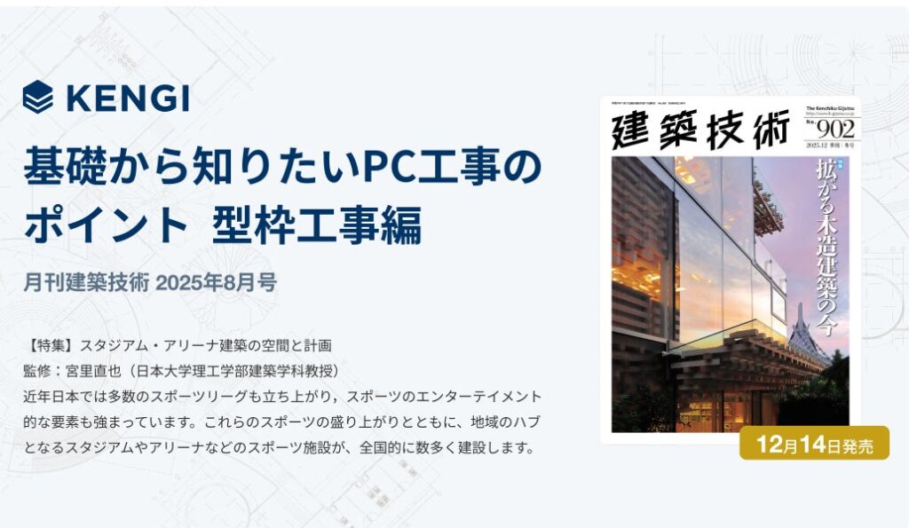 技術書籍のオンライン販売とともに、これまで建築技術では取り扱うことのできなかった最新情報や専門家による解説記事も配信する。 今後は、建築技術者の成長と業界全体の発展を支援するため、75年分のアーカイブを含む専門誌のデジタル提供や技術書籍・論文のデータベース化と検索機能、KENGI AIの提供、技術者同士による交流の場の提供、建設会社向けの技術経営を実現するためのソフトウェア開発などを展開する方針だ。