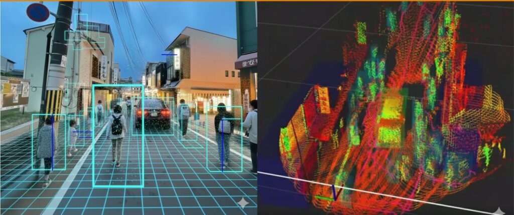 この試みは、観光客の集中により伏見稲荷周辺地域で課題となっている「歩車錯綜(歩行者と車が入り乱れる状態)」に対し、関西電力送配電が保有する電柱などの電力アセットを活用し、従来ではわからなかった道路状況の可視化やEBPM(証拠に基づく政策立案)検討を支援するもの。LiDARセンサーを電柱などに設置して歩行者や自動車、バイクなどのデータを取得し、MATIENCEを使ってリアルタイムに分析した。