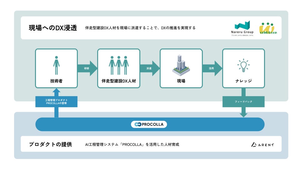 ナレルグループの柴田直樹代表取締役は「現場の最前線で活躍し知見を持つ伴走型建設DX人材が活きた建設DXの浸透を担うと同時に、現場での建設DXの浸透につながる」とし、Arentの鴨林広軌代表取締役社長は「建設現場のDXを真に加速させるには高度なAI技術だけでなく、実務に寄り添い伴走できる人の力が欠かせない。ナレルグループとの提携を通じて全国の現場へ『PROCOLLA』の価値を直接届ける体制が整った」としている。