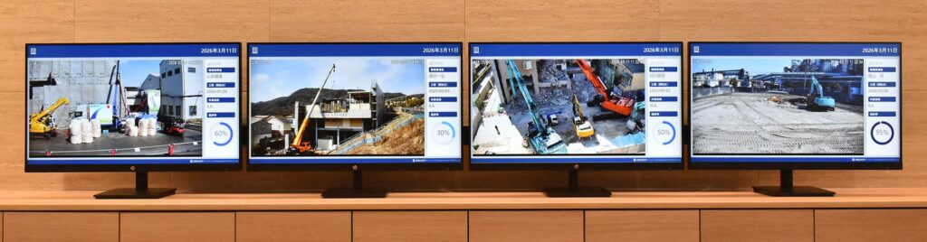 このほか工事現場における高額資材の盗難抑止や、盗難を早期に発見するため、通常人の出入りがない夜間から朝方にかけて人の動きが検知された際、即座に把握しアラートをスマートフォンに通知する。過去のダッシュボード画面を時系列で一覧表示し、現場の変化を日別、週別、月別の画像でも振り返ることもできる。