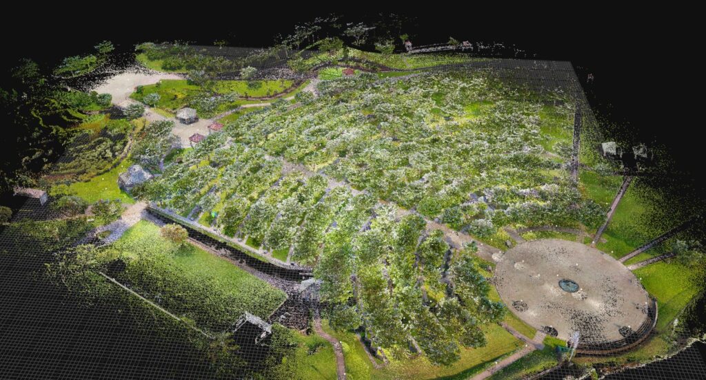クラスターは平和の礎の壮大な景観を高精細な点群データとして記録し、本来は非常に高容量となる空間データを独自のプラットフォーム基盤技術により低容量に変換・最適化し、現地の景色をありのまま保存しつつ、スマートフォンやPCからでもスムーズな空間体験を実現した。