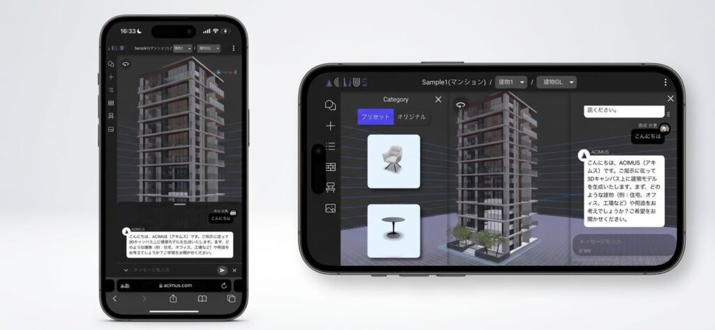 ACIMUS(東京都千代田区)は、生成AIとの対話でBIMモデルを作成できるChatBIMクラウドサービス「ACIMUS(アキムス)」の新機能として「モバイルBIM」「AIペンスケッチ」「3Dマップ」の3つを追加した。建設業界における営業・提案のあり方そのものを変革する一歩に位置付けた機能で、BIMを「営業の武器」にもつなげていくとしている。