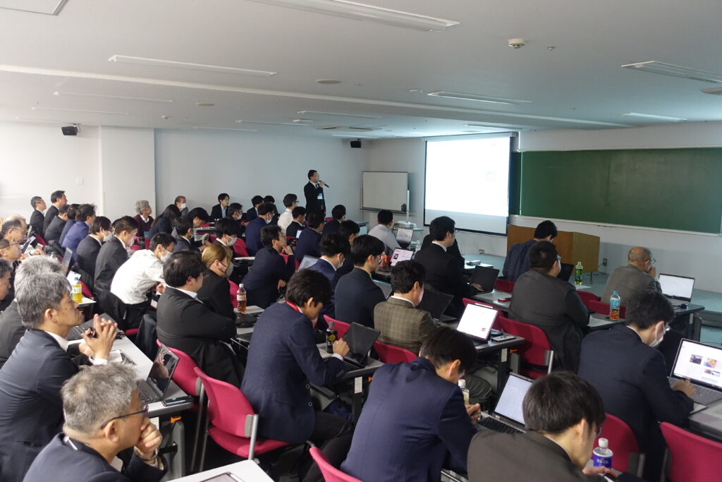 イベントに出席した企業・団体は104組織に達し、会場には200人を超える関係者が集まった。ゼネコンや専門工事会社、建設コンサルタント、建設機械メーカーはもちろん、建設DX関連に加え、ロボット、通信、電機関連からの参加もあった。