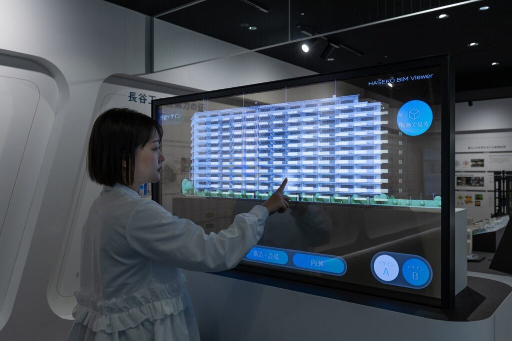長谷工コーポレーションは、自社グループの情報拠点「HASEKO MIRAI BASEMENT」(通称・HMB)を同社関西(大阪市)拠点の地下一階にオープンした。分譲マンション建設事業に特化した強みの技術や製品を、建替えや再開発を検討する地権者や事業者に紹介する場になり、設計や施工のあらゆる段階で活用するデジタル3Dを用いた独自の建築ワークフロー「長谷工版BIM」も体感できる。