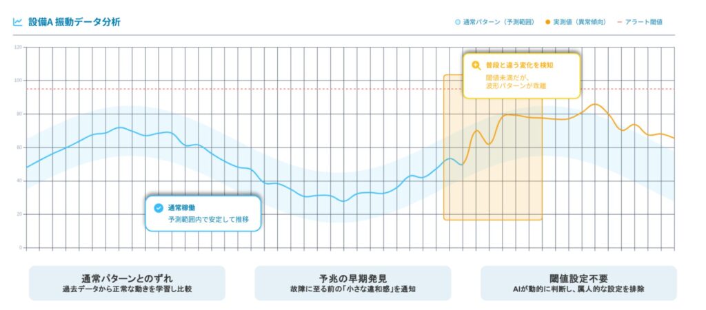 これまで多くの現場では、設備や環境の異常を検知する監視システムが導入されてきたが、従来の仕組みはあらかじめ設定したしきい値を超えた際にアラートが発報される「事後対応型」が中心で、異常の検知が遅れる要因だった。
