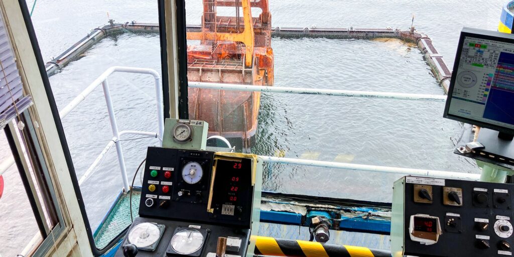 ワキタ(大阪市)は、グラブ浚渫船に自動施工機能を付与する「グラブ浚渫船自動化システム」を開発した。船に遠隔操縦装置を設置し、自動制御ソフトと連携させる仕組みで、複雑な浚渫施工の主要動作をシームレスに自動化し、長時間連続運転やヒューマンエラーの抑制、動作最適化を実現する。国土交通省がi-Construction2.0で掲げる港湾工事自動化に対応し、人手不足解消と施工効率向上に貢献するもので今後、多様な現場に展開していく方針だ。