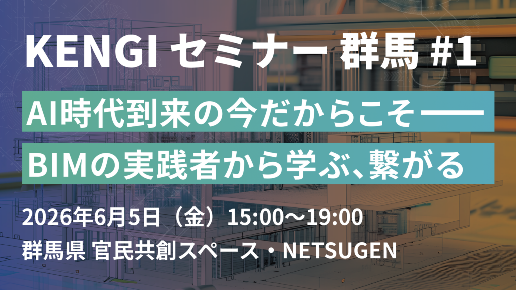 建築技術は、建築技術者のためのデジタルプラットフォーム「KENGI(ケンギ)」にイベント機能を追加し、全国16回の建築技術セミナーシリーズ「KENGIセミナー」を展開する。第一回は6月5日に「AI時代到来の今だからこそ——BIMの実践者から学ぶ、繋がる」をテーマに群馬県前橋市の群馬県庁32階 NETSUGENセミナースペースで開催する。