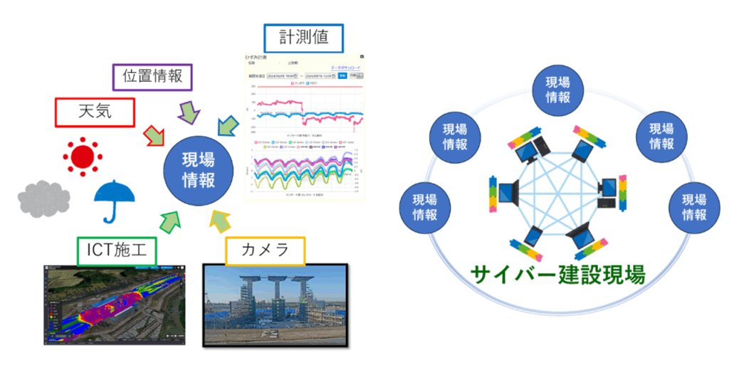 飛島建設と応用技術は、クラウド上にBIM/CIMモデルで工事現場を再現し、デジタルツインプラットフォームとして現場デジタル情報を共有可能にしたクラウドサービス「サイバー建設現場」を共同開発した。遠隔地から現場の進捗や状況を確認でき、工事関係者間の協議を円滑化し、生産性向上につながる。