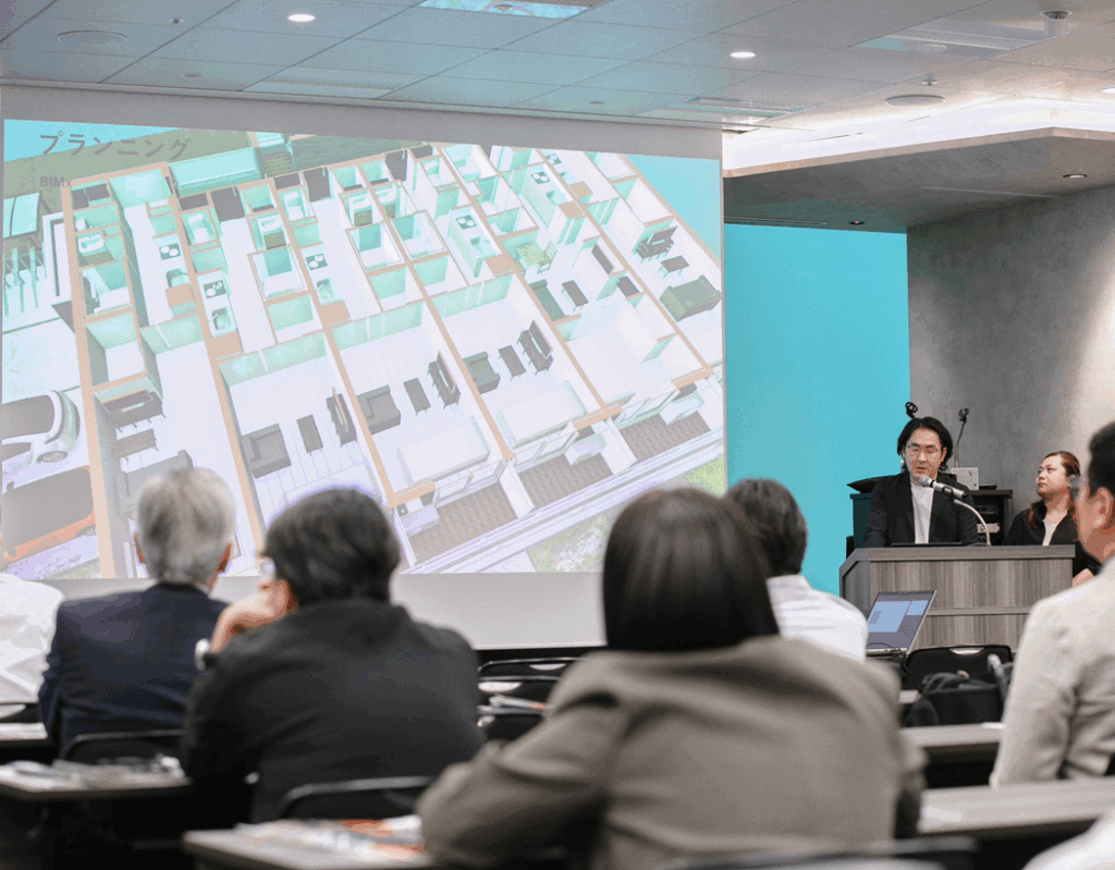 同社は2021年からBIMを導入し、計画から実施設計、積算・発注まで一貫したワークフローを構築しており、建物ライフサイクル全体を通じた情報の利活用を進めている。導入から1年足らずでBIMモデルからの積算用数量出力システムを完成させ、24年7月から本格運用を始めた。提案図面作成を100%BIM化しており、平均1・41%の発注金額削減を7件の実績で達成したほか、フローリング割付で54棟286坪分の過発注を抑制し、産廃削減にもつなげている。