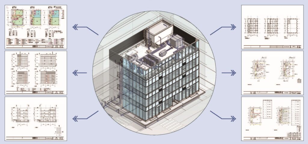これは、クラウド上で建物のライフサイクルを通じて関連情報をデータベース(DB)化する「建物DB」を基盤に、関係者が建物の関連情報を出し入れしながら情報共有を進めていく流れを想定したものだ。ファイルベースでなくモデルベースでデータ連携する流れを前提にしており、確認申請も一つのモデルデータから関連情報を抽出し、適材適所で効果的にツールを使う枠組みを位置付けている。