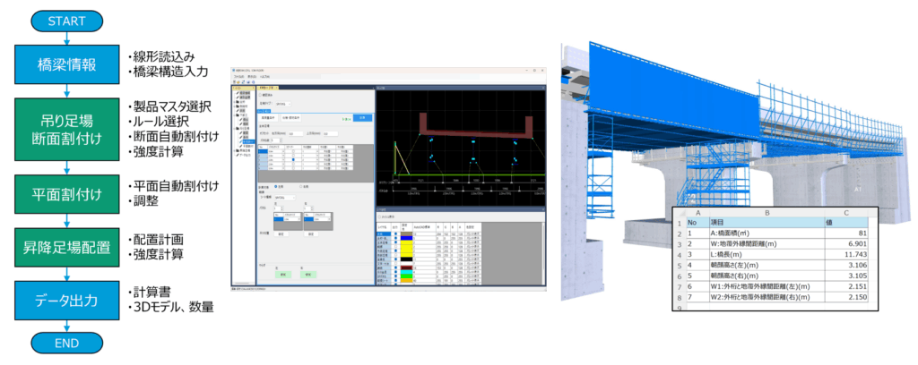近年、橋梁上部工の新設・リニューアルにおいてパネル式吊り足場の採用が進む中で、仮設設計の属人化や現場作業の非効率が問題となっている。特に熟練技術者に依存した設計作業は、再現性や標準化が難しく、計画ミスや現場不一致による手戻りのリスクが懸念されていた。