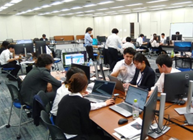5日間の新入社員向けBIM/CIM研修では、初日に土木設計の基礎やBIM/CIMの概論を学んだ後、3日間かけて社内の業務ツールに位置付けるオートデスクの3次元設計ツール『Civil 3D』やプロジェクトレビューツール『Navisworks』などの操作を習得する。研修最終日には5人一組で発注者の立場になり、その解決策をBIM/CIMデータを活用して探る場を設けている。他のチームの前で説明することでプレゼンテーション能力も磨いている。